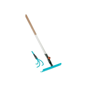 Комплект: рыхлитель 9см насадка для комбисистемы + грабли 30см насадка для комбисистемы + ручка деревянная эргономичная 130см для комбисистемы Gardena 03004-20.000.00 используется для удобства сбора мусора с участка, выравнивания клумб и грядок, рыхления почвы без риска повреждения корней растений.